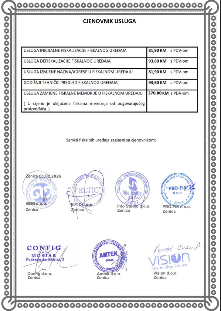 Zadnja izmjena cijena 01.02.2026. godine